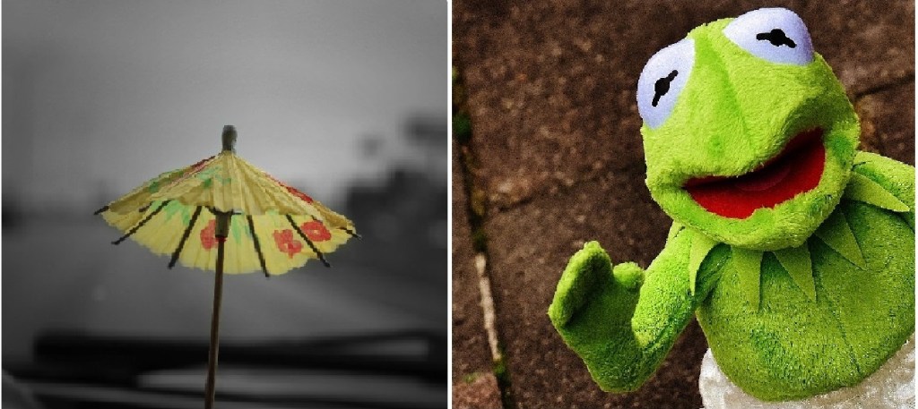 Later, in the classroom, I asked four questions about the different experiences in the rain, with four bright and beautiful clues. You guessed it – the toy frog, corn, car and mocktail umbrella.