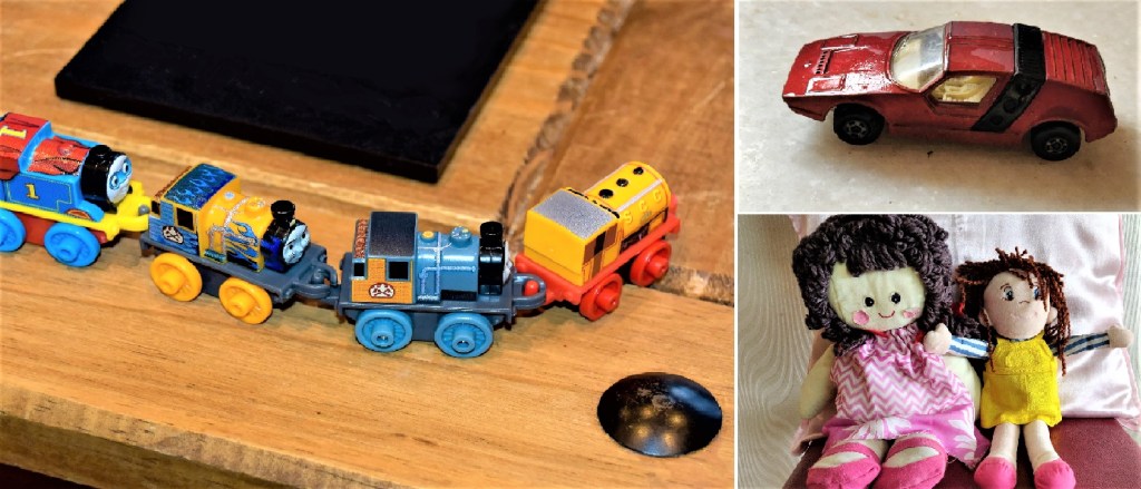 I gave my nephew an extra cuddle and borrowed his toy frog, a toy corn of the cob, a toy bus (to discuss puddles and splashes) and even a mocktail umbrella that had found its way into his extensive collection.